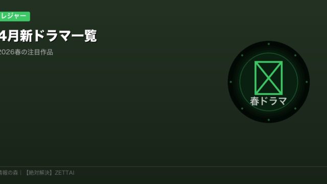 その他 4月の新ドラマ一覧2026春!注目キャスト&あらすじまとめ jyouhounomori 4月の新ドラマ一覧2026春!注目キャスト&あらすじまとめ あなたは「4月から何のドラマ見ようかな?」と迷っていませんか? 2026年4 …