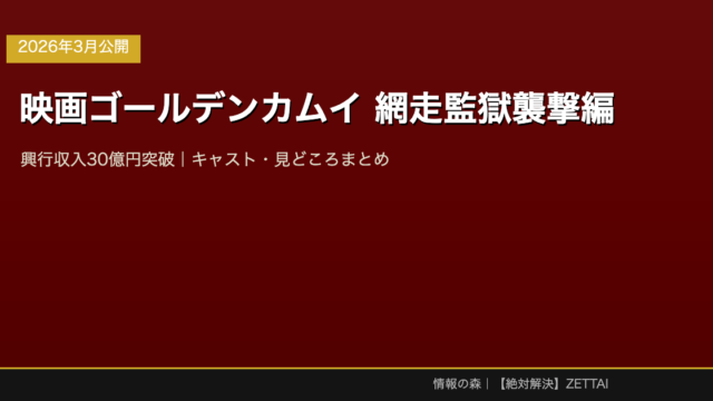 その他 【ネタバレなし】映画ゴールデンカムイ 網走監獄襲撃編|キャスト・見どころ・興行収入まとめ jyouhounomori 【ネタバレなし】映画ゴールデンカムイ 網走監獄襲撃編|キャスト・見どころ・興行収入まとめ 2026年3月13日、大人気漫画「ゴールデン …