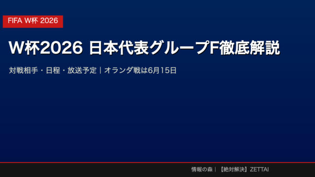 その他 【W杯2026】日本代表の対戦相手・日程・放送予定を徹底解説|グループF完全ガイド jyouhounomori 【W杯2026】日本代表の対戦相手・日程・放送予定を徹底解説|グループF完全ガイド 2026年、FIFAワールドカップがカナダ・メキシ …