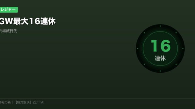 その他 GW2026は最大16連休!有給6日で実現するカレンダー活用術と穴場旅行先 jyouhounomori GW2026は最大16連休が可能!カレンダーを確認しよう 2026年のゴールデンウィーク、有給6日を使えば最大16連休が実現できることをご …