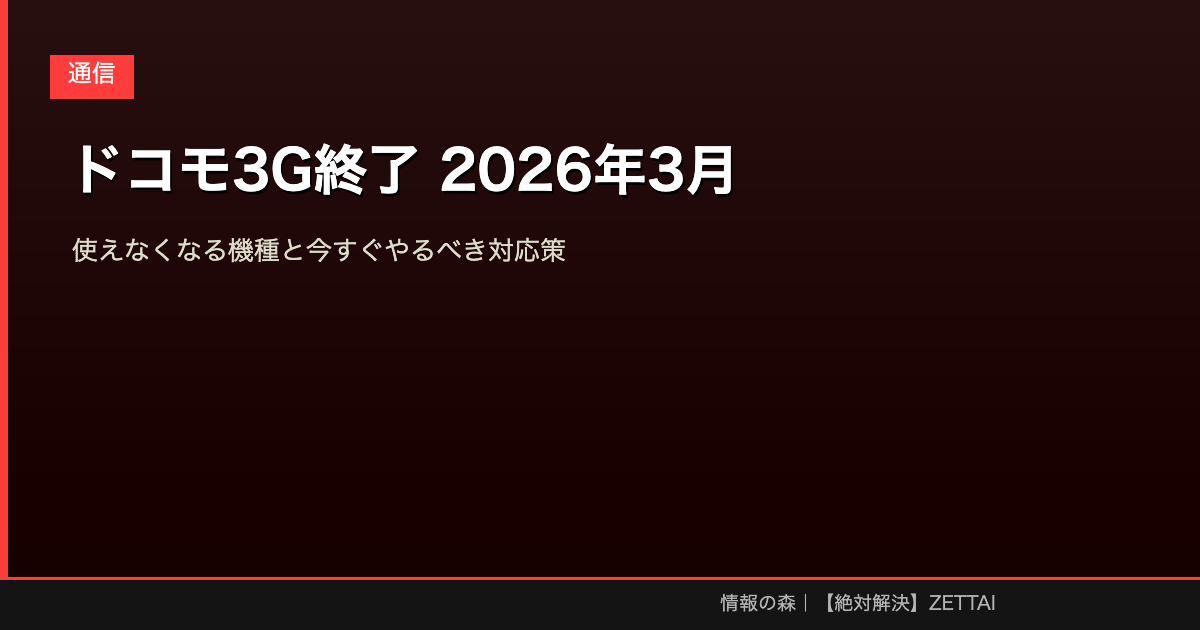 NTTドコモのFOMA(3G)サービスが2026年3月31日をもって終了します。これにより、3G回線のみに対応した携帯電話やスマートフォンは通話・通信ともに一切利用できなくなります。