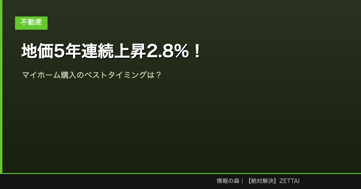 地価2.8%上昇は「まだ上がる」のシグナル。買い時を逃さないためにも、情報収集は今すぐ始めましょう。