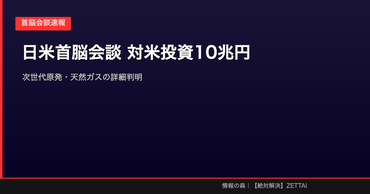 日本経済新聞によると、対米投資の第2弾として約10兆円規模の投資パッケージが調整されており、次世代原発や天然ガス発電が含まれることが判明しました。