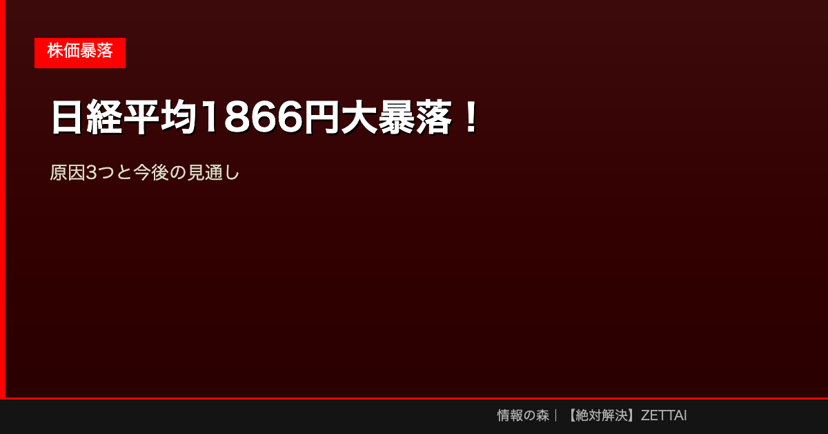 2026年3月19日、日経平均株価が前日比1866円安の5万3372円で取引を終え、今年最大の下落幅を記録しました。