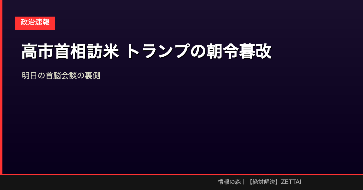 【高市首相訪米】トランプの「朝令暮改」に日本政府が警戒する理由|明日の首脳会談の裏側