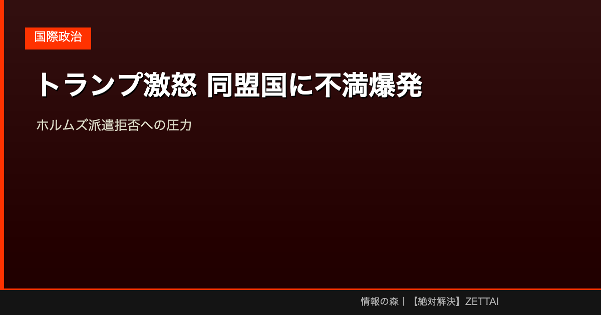 【トランプ激怒】同盟国のホルムズ海峡派遣拒否に不満爆発!日本への圧力はどうなる