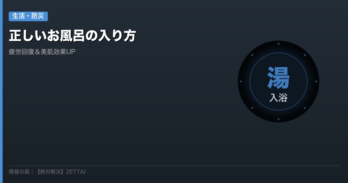 いきなり肩まで浸かるのはNG。正しい入浴の順番を守ることで、体への負担を減らしながら効果を最大化できます。