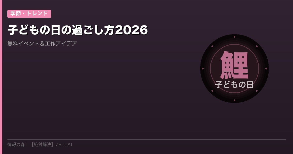 この記事では、無料で参加できるイベント情報からおうちで楽しめる工作アイデアまで、2026年の子どもの日を最高の1日にする方法を10個厳選してご紹介します。最後まで読めば、あなたの家庭にピッタリのプランが必ず見つかりますよ。