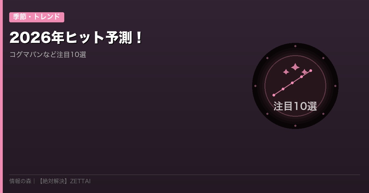 コグマパン・ブラインドボックス・シンセウェーブファッションなど、すでに若い世代の間でバズっているものから、2026年後半に爆発が予測されるものまで、注目の10選を厳選しました。