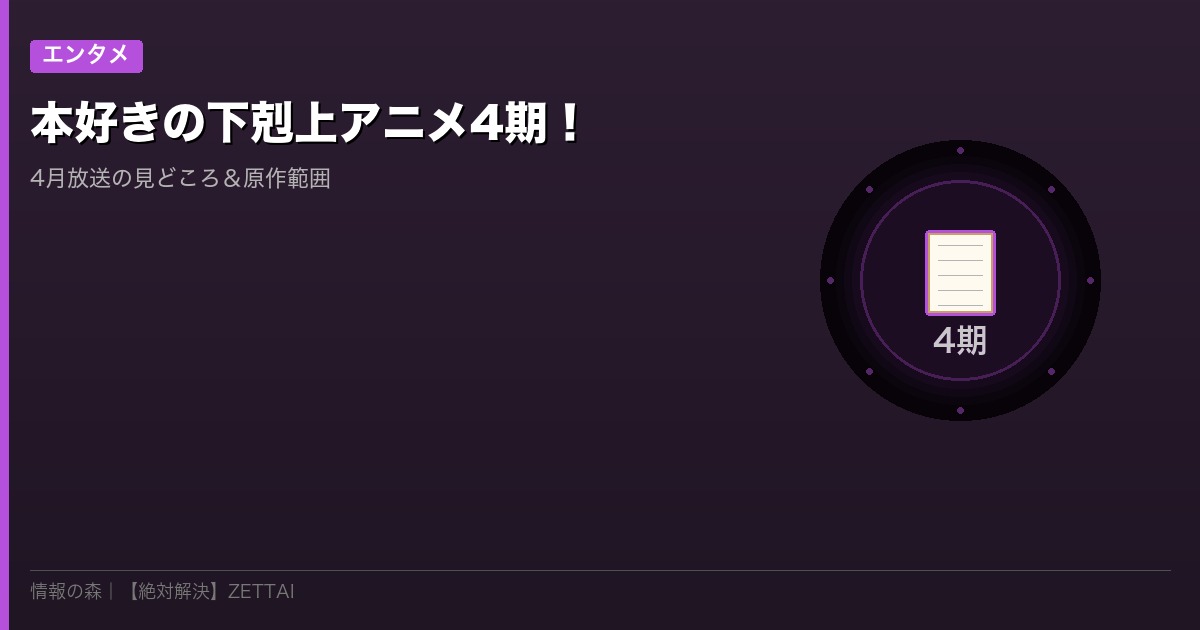 2026年4月、ついに「本好きの下剋上」アニメ第4期がスタートします。