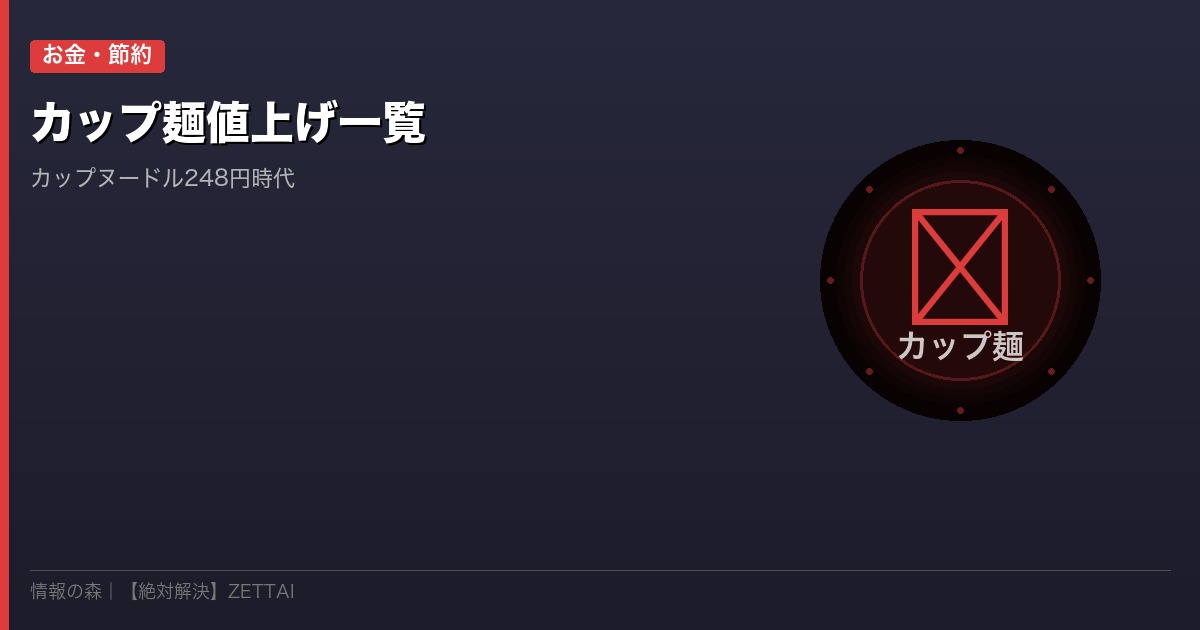 この記事では、主要メーカーの値上げ一覧と、カップ麺を安く買う方法・代替節約術を完全網羅します。