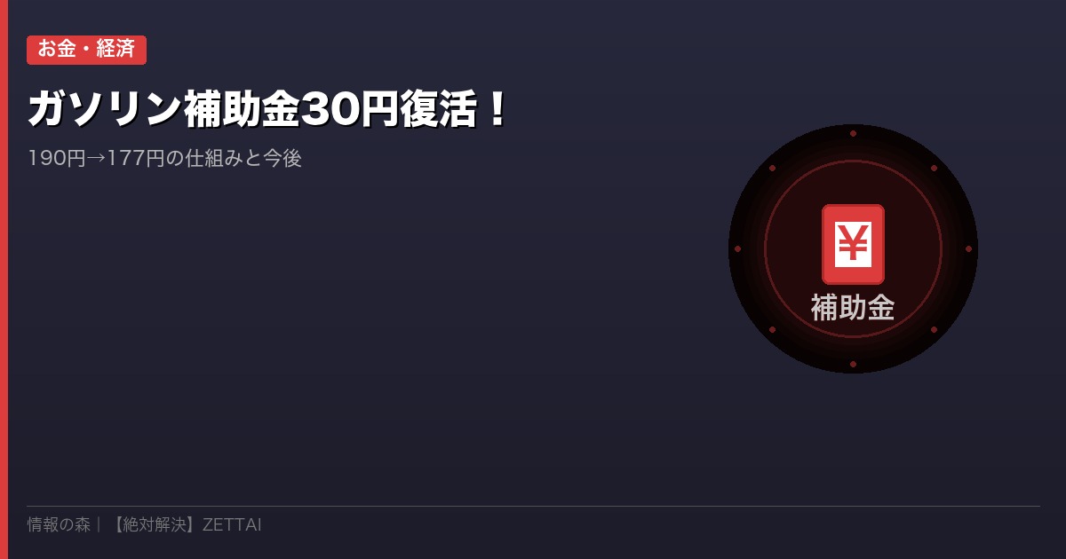 ガソリン補助金30.2円/L復活!その仕組みを解説