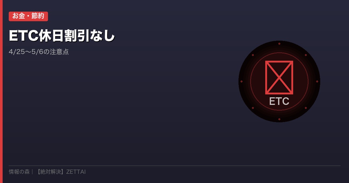 「GWはETC休日割引で高速代がお得になるでしょ?」と思っているあなた、2026年のGW期間中(4/25〜5/6)はETC休日割引が適用されません。