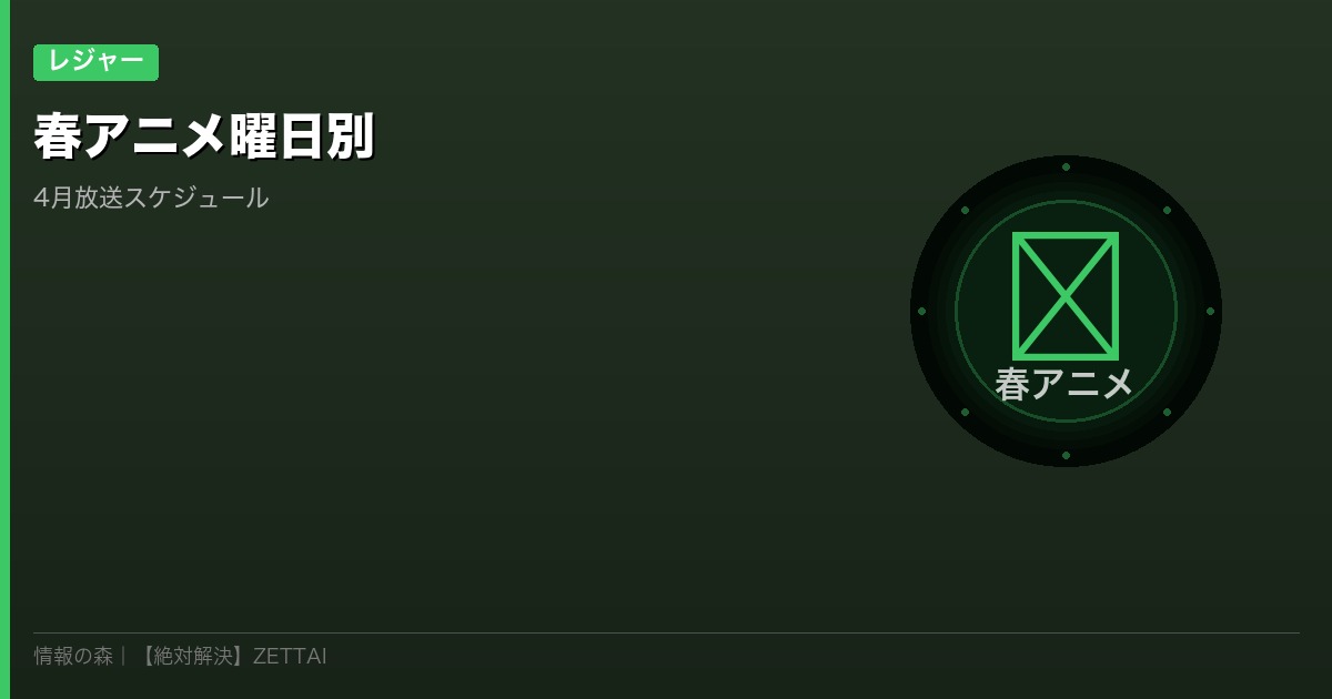 作品が多すぎて迷うのも春アニメの醍醐味です。この記事のスケジュール表を参考に、あなただけの視聴計画を立ててみてください。