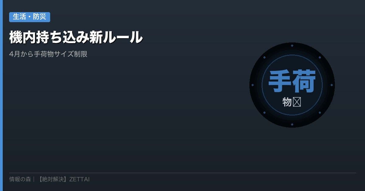 2026年4月1日から始まる機内持ち込み手荷物の新ルール。ポイントは3つです。