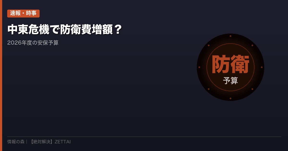 中東危機で防衛費は増額される?2026年度の安保予算まとめ