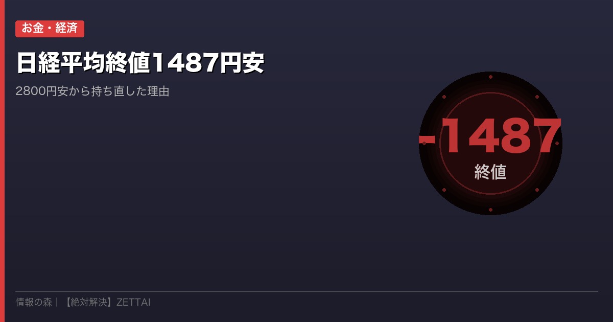 「朝起きてスマホを見たら、日経平均が2800円も暴落してた…」そんな衝撃の朝を迎えた方も多いでしょう。