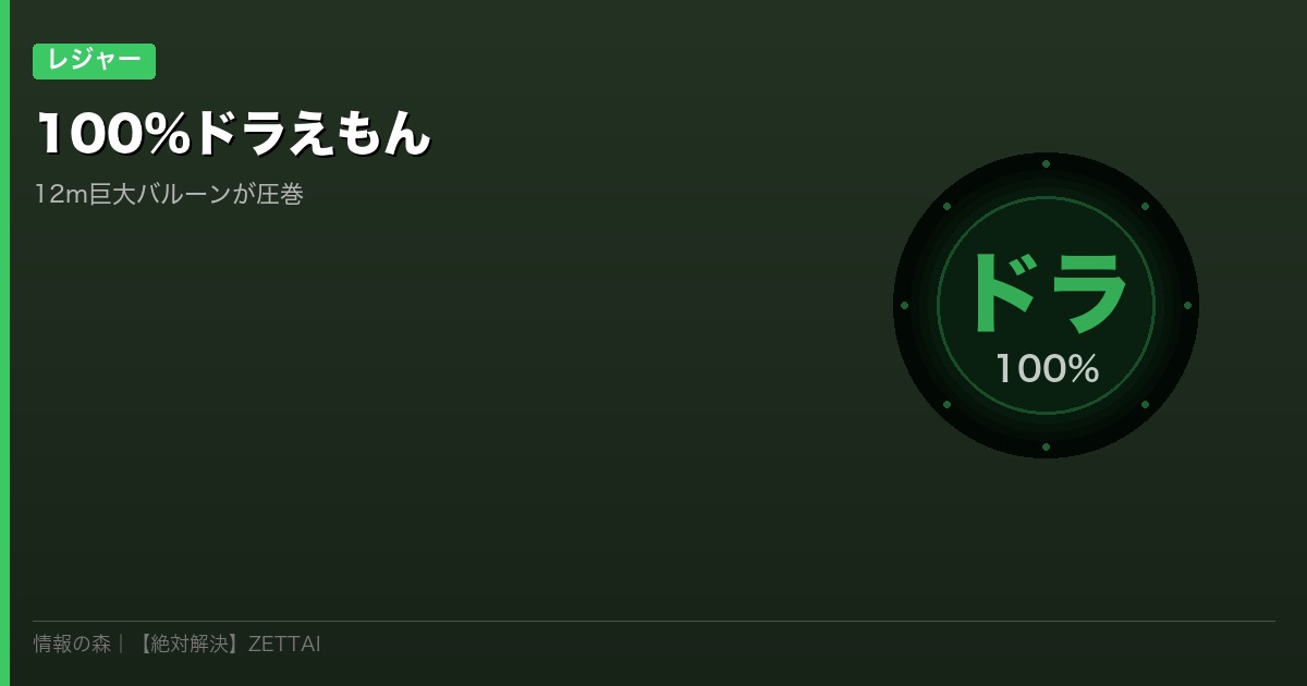 「12メートルのドラえもんバルーンってどれだけデカいの?」——答えは3階建てのビルに匹敵する巨大さです。TOKYO DREAM PARK内で開催中の「100%ドラえもん&フレンズ in 東京」は、ドラえもんファンならずとも圧倒される展示が目白押し。