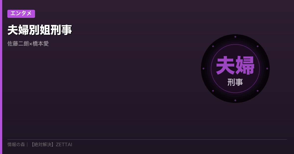 「夫婦なのに刑事コンビ?」――2026年4月期の新ドラマ「夫婦別姐刑事」が話題沸騰中です。