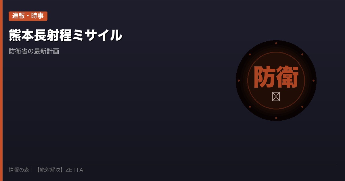 「日本にも長射程ミサイルが配備されるの?」——このニュースに衝撃を受けた方は少なくないでしょう。防衛省が熊本・健軍駐屯地への長射程ミサイル配備計画を発表し、日本の安全保障政策が大きな転換点を迎えています。