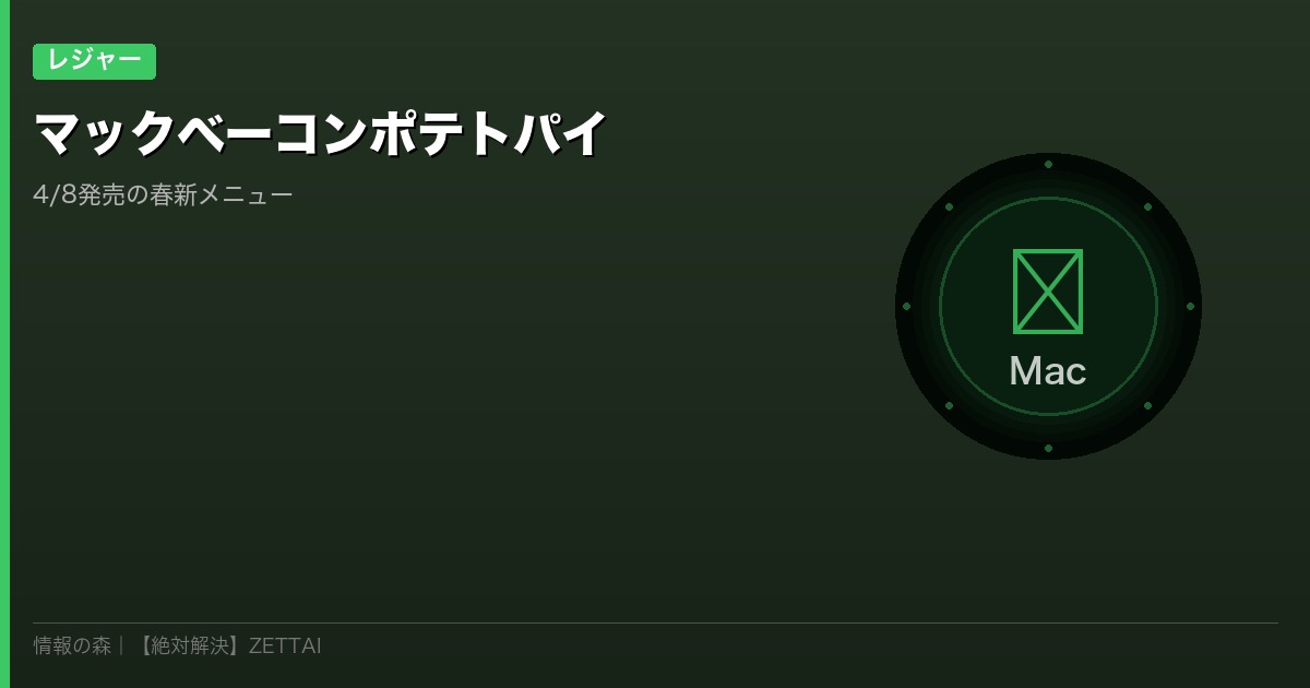 マクドナルドの新メニューが気になるあなた、2026年4月8日から「ベーコンポテトパイ」が期間限定で登場します!ポテトとベーコンの黄金コンビが、サクサクのパイ生地に包まれた注目の一品です。