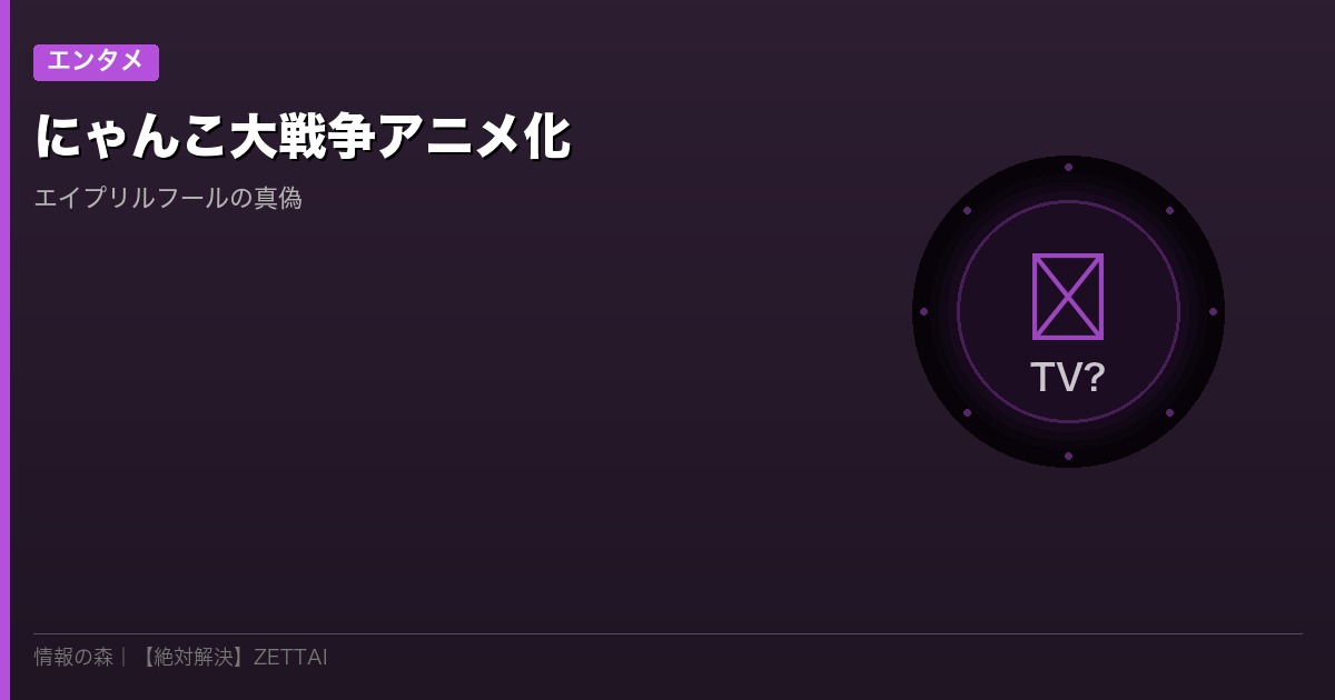 「にゃんこ大戦争がTVアニメ化!?」――2026年4月1日、にゃんこ大戦争公式が突如発表した「TVアニメ化決定」のニュースがSNSで大バズり。監督もキャストも全員ネコという衝撃の布陣に、ファンからは「本気なのかネタなのかわからない」の声が殺到しました。