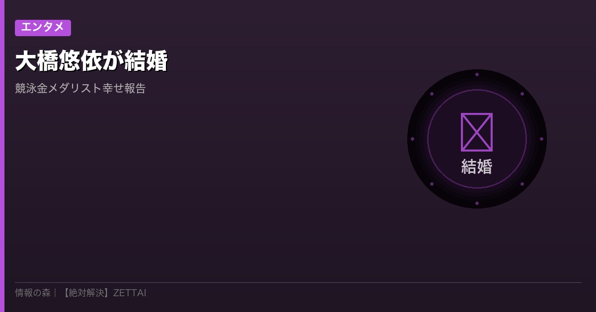 東京2020オリンピックで競泳2冠を達成した大橋悠依選手が2026年3月に結婚を発表しました。競泳界のヒロインの幸せなニュースに、SNSでは祝福の声が殺到しています。