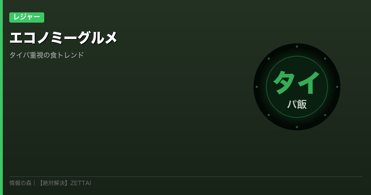 常温保存可能な生パスタ、進化した冷凍食品、ワンコインで満足できるランチ。タイパ(時間効率)とコスパを両立する「エコノミーグルメ」は、忙しいあなたの食生活を劇的に変えてくれます。