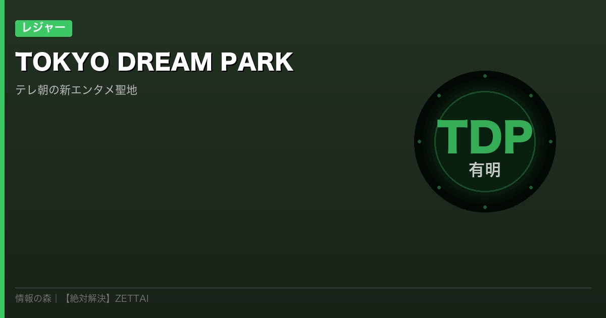 ※記事の情報は2026年3月30日時点のものです。最新のチケット情報・営業時間はTOKYO DREAM PARK公式サイトでご確認ください。