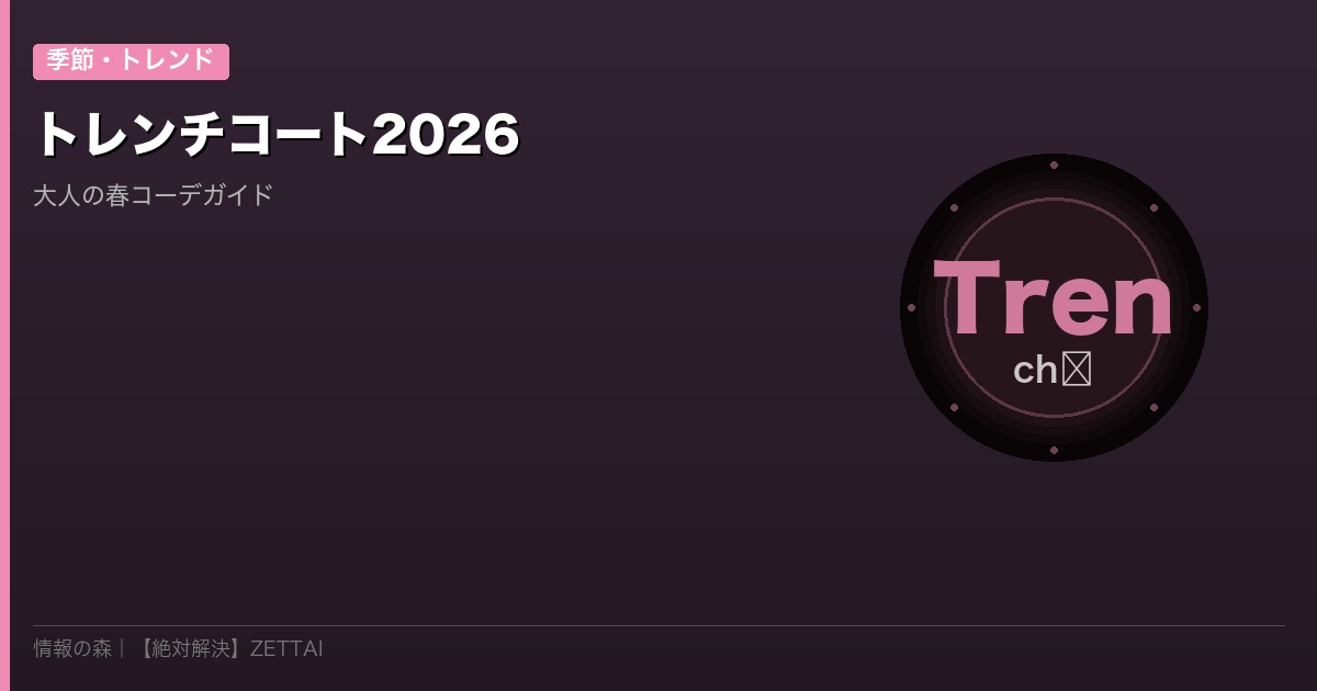 「毎年同じように着ているけど、なんだか垢抜けない…」そんなあなたに向けて、この記事では2026年春夏のトレンチコート最新トレンドと大人女子のための着こなし術を徹底解説します。