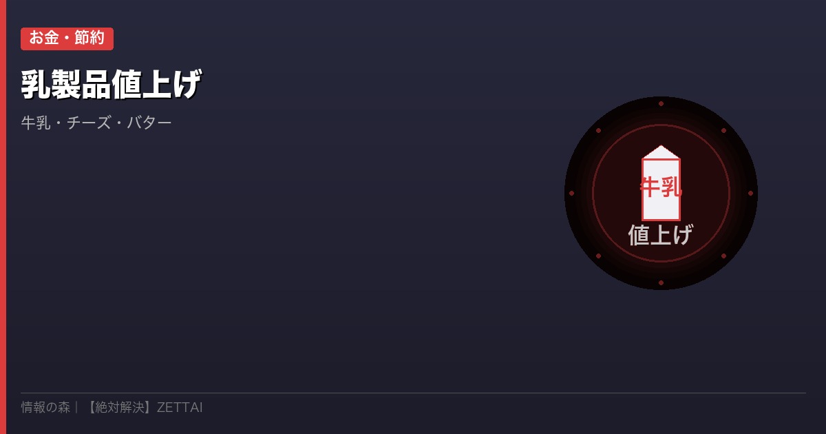 そう感じている方、あなただけではありません。2026年春、雪印メグミルク・森永乳業・明治の乳業大手3社が一斉に乳製品の値上げを実施しました。牛乳・バター・チーズ・ヨーグルトと、冷蔵庫に必ずある商品ばかりです。