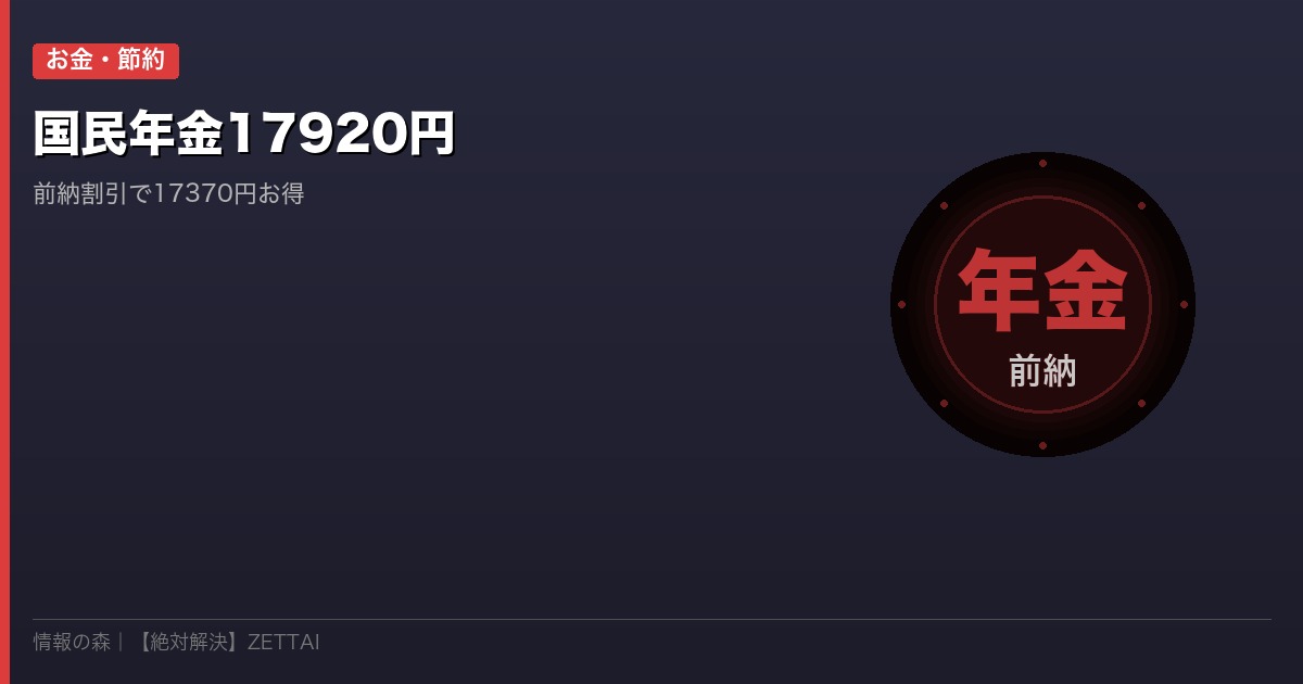 国民年金17,920円に値上げ!前納で最大17,370円お得に