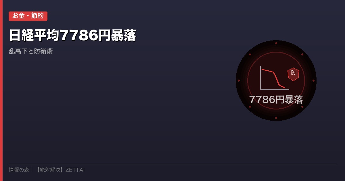 3月9日の1日で4200円超の急落は、多くの個人投資家にパニック売りを引き起こしました。「損切りすべきか」「買い向かうべきか」——正解がわからないまま資産が目減りしていく恐怖を味わった方も多いでしょう。