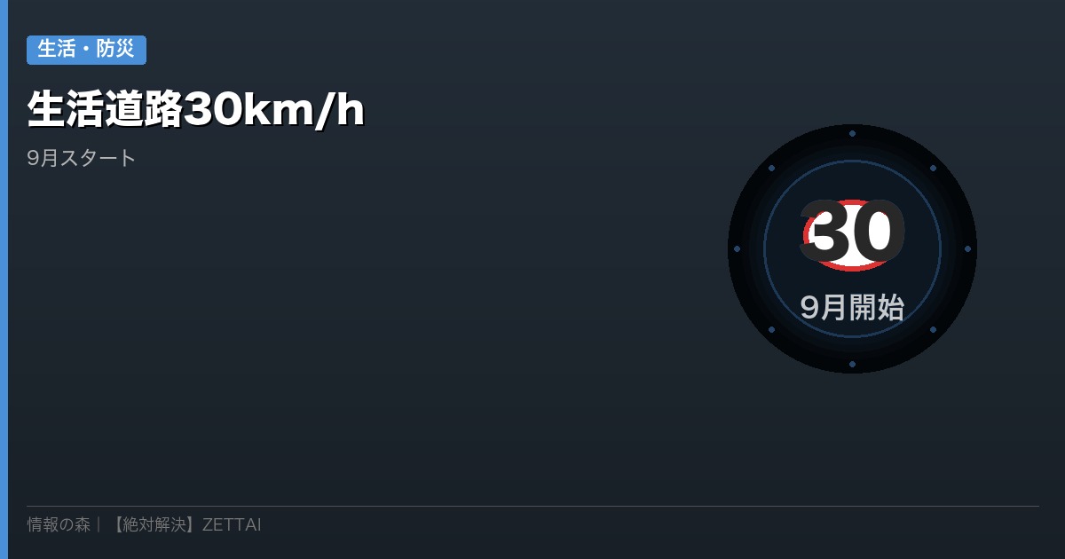 あなたが毎日通る住宅街の細い道路——その法定速度が60km/hから30km/hに変わることをご存知ですか?
