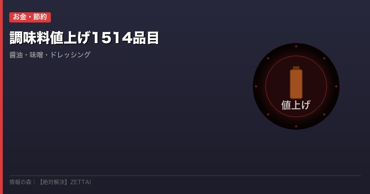 2026年4月の調味料値上げは1,514品目、値上げ率1〜25%と、家計への影響は決して小さくありません。