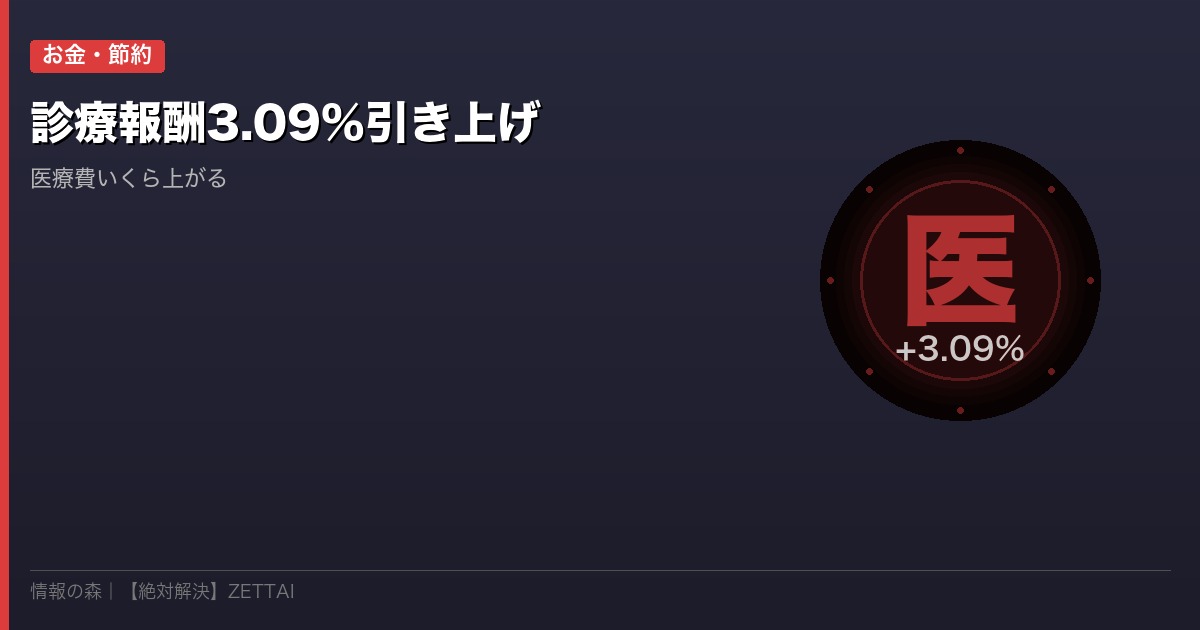 「診療報酬3.09%引き上げ…病院に行くだけでお金がもっとかかるの?」