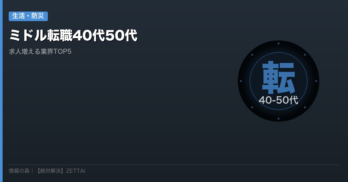 この記事では、ミドル転職が追い風になっている5つの業界と、成功するための具体的な戦略を徹底解説します。あなたの経験とスキルが「最も高く売れる」業界がわかります。