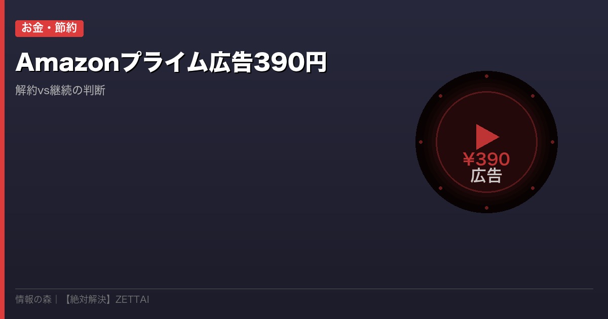 「Amazonプライム・ビデオ見てたら急に広告が…月390円払わないとダメ?」この不満、あなただけじゃありません。2025年4月8日から広告付き配信が始まり、広告なしにするには月390円×12ヶ月=年間4,680円の追加負担。プライム会費と合わせると年間10,580円を超えます。