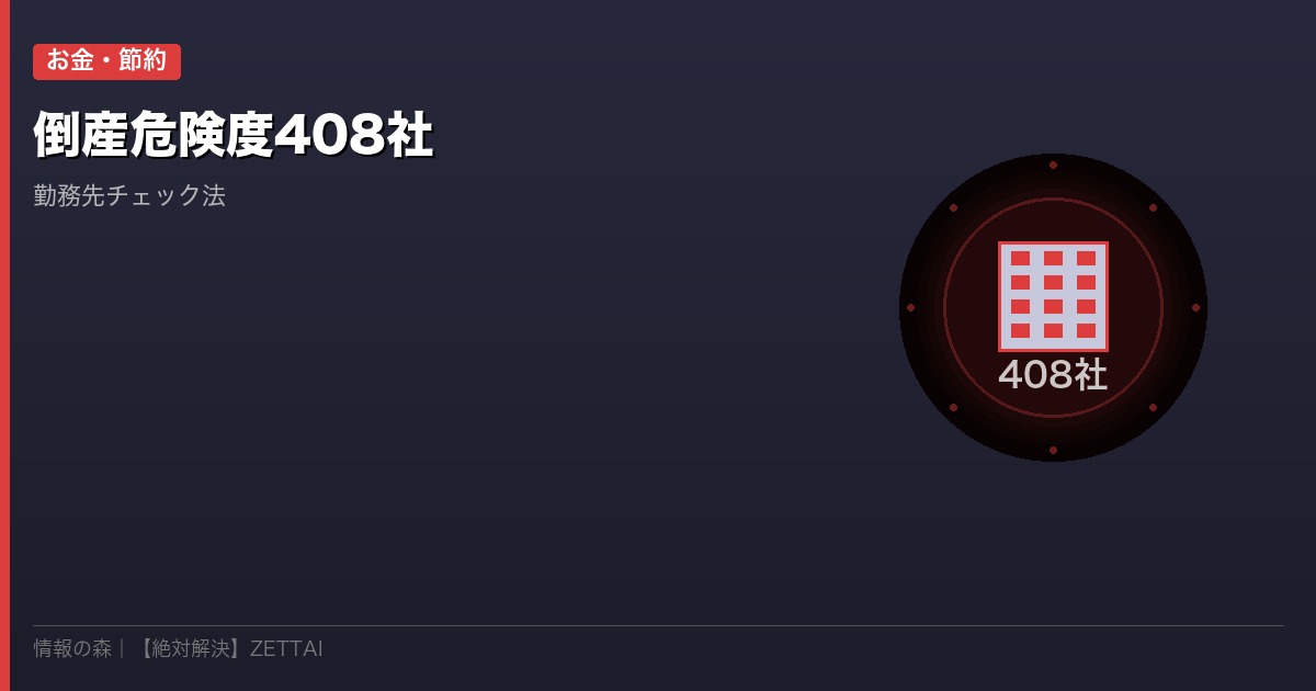 「うちの会社、ダイヤモンドのランキング408社に入ってたらどうしよう」「そもそも倒産リスクってどう見抜くの?」——週刊ダイヤモンド2026年版の「倒産危険度ランキング」が発表され、衝撃が走っています。