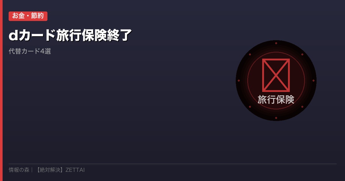 2026年3月末でdカード(一般)の海外旅行傷害保険が廃止されることが発表され、GWの旅行予定者に衝撃が走っています。