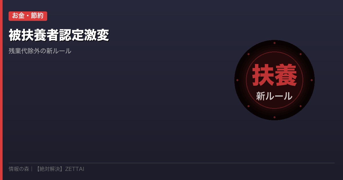 「年末に残業したら扶養から外れてしまった…」「130万円の壁、残業代でうっかり超えた」——こうした悩みが、2026年4月の被扶養者認定ルール改正で大幅に解消されます。残業代が年収判定から除外される新基準により、「扶養に復帰できる人」が続出する見込みです。