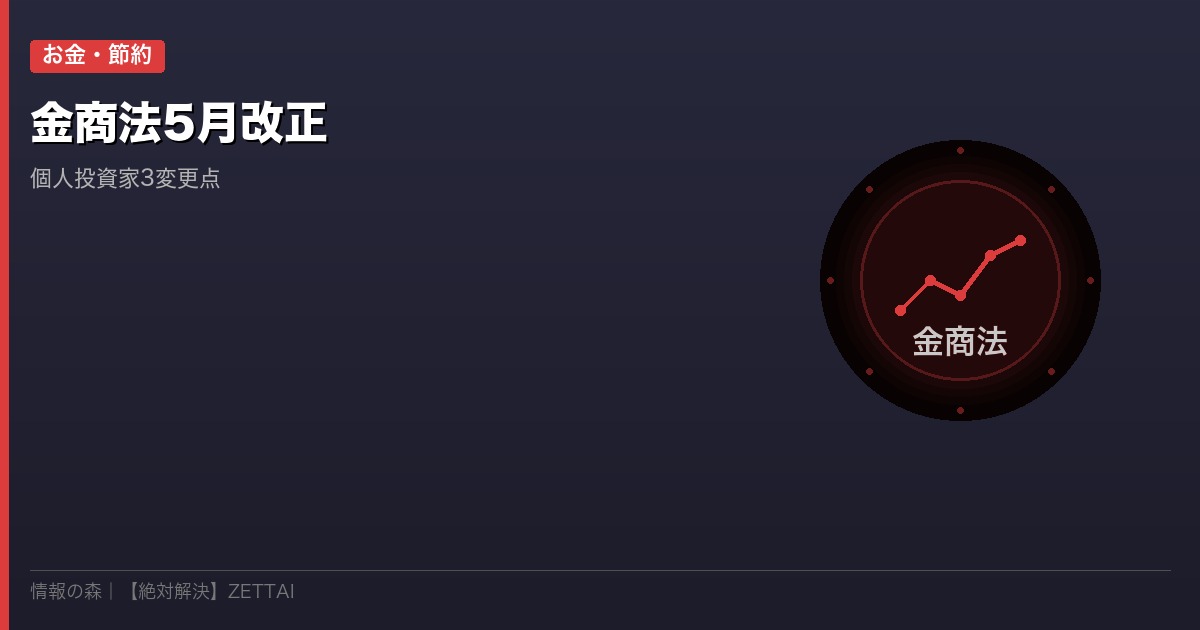 この記事では、改正の3つの変更点と、個人投資家がやるべき対応をわかりやすくまとめました。投資は自己責任ですが、情報武装は今すぐできます。
