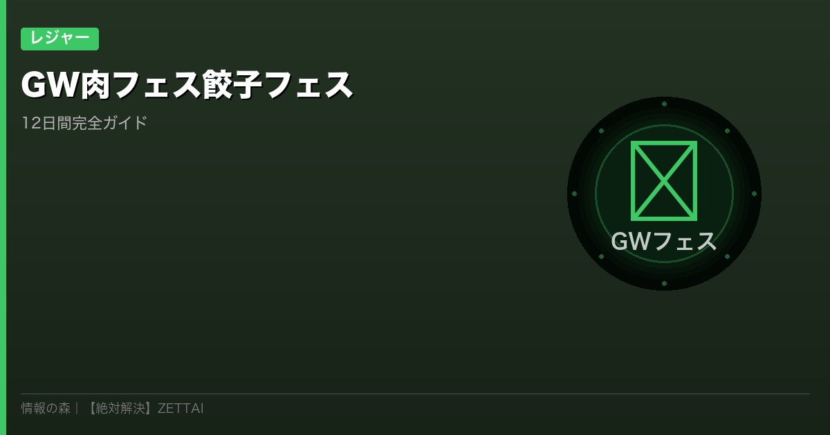 GWは肉フェス・餃子フェス以外にも多彩なイベントが目白押し。カレンダーの組み方次第で1週間以上のロング休暇にできます。詳しくは GW2026の8連休カレンダー活用術 をチェック。