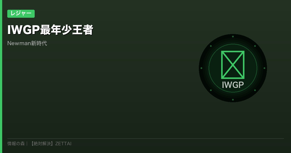 Newmanは2026年4月4日のSAKURA GENESISで史上最年少のIWGP世界ヘビー級王者となりました。これまでの最年少記録を大幅に更新する快挙です。