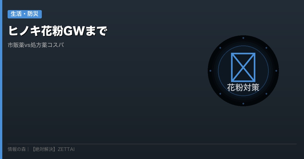 この記事では、ヒノキ花粉の最新飛散予測に加え、市販薬と処方薬のコスパ徹底比較、そして今すぐできる最強対策5選をお届けします。最後まで読めば、GWまでの花粉シーズンを最小コストで乗り切る方法がわかりますよ。