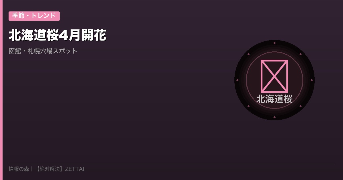 本州の桜が終わった後に「もう一度お花見したい!」という方にも、北海道はぴったりの選択肢。この記事では、北海道の桜開花予想と穴場の花見スポットを地域別に徹底解説します。