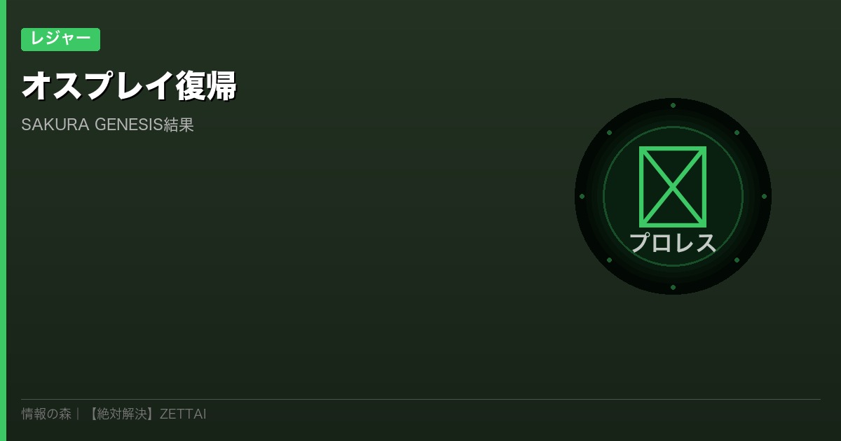2026年4月4日、両国国技館で開催された新日本プロレス「SAKURA GENESIS 2026」。この大会の最大のサプライズは、ウィル・オスプレイの2年2ヶ月ぶりの新日本マット復帰でした。