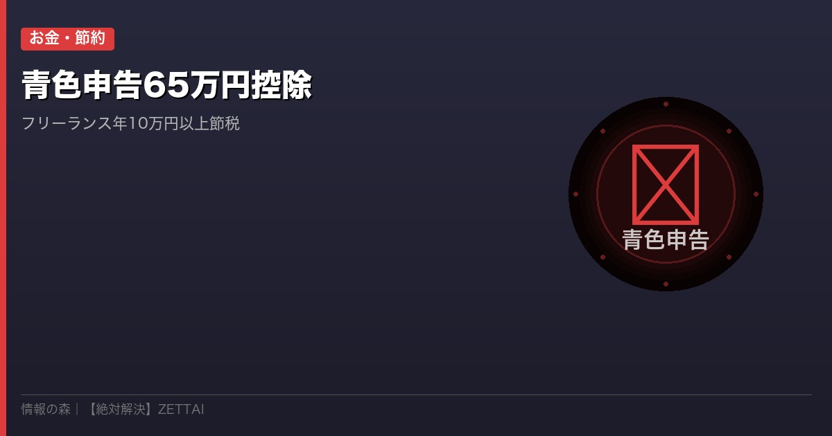 課税所得から最大65万円を差し引けるという破壊力を持ちます。所得税率が20%なら、それだけで13万円の節税。住民税も含めると年間16〜20万円近くの差が出ます。