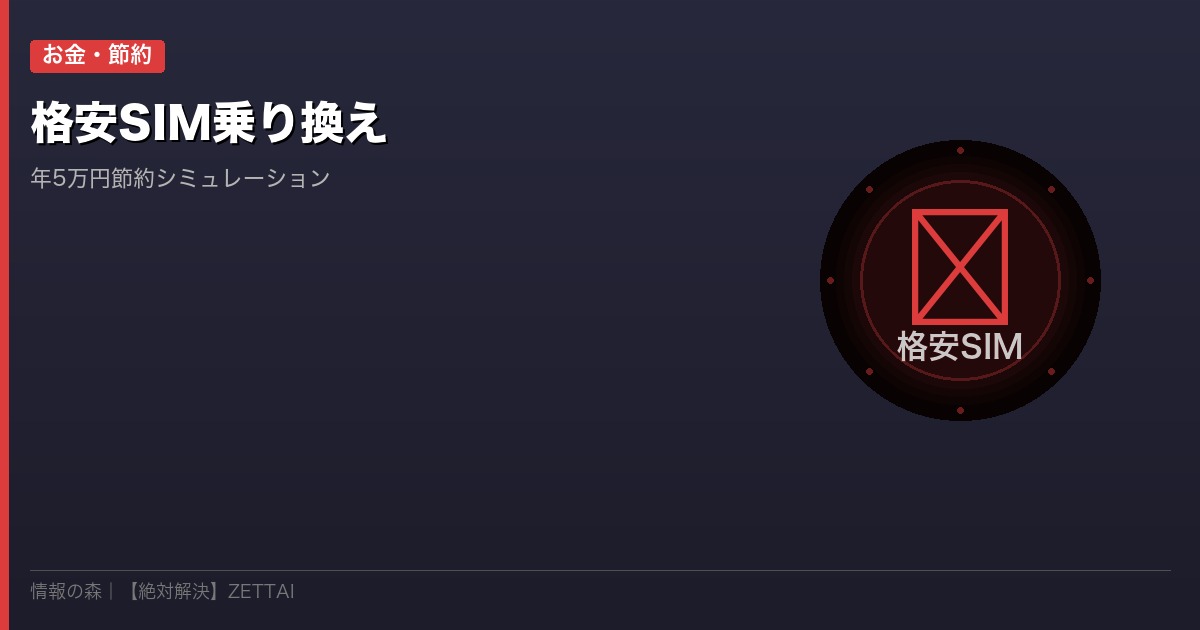 大手キャリアから格安SIMへの乗り換えは、年間5万円以上の節約が見込める、最もコスパの高い家計改善策の一つです。