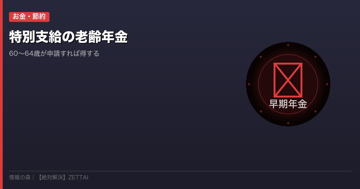 また、「年金は65歳から」という思い込みが根強く、60代前半で自分が対象とは気づかないケースも多いです。申請しないと1円も受け取れないので、対象かどうかを今すぐ確認してください。